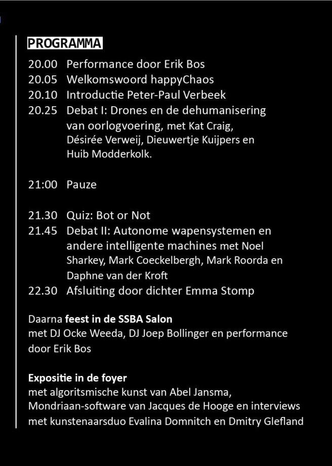 Kom robotkunst bekijken, praat mee over de toekomst van autonome wapens en test of je kunt flirten met een robot.