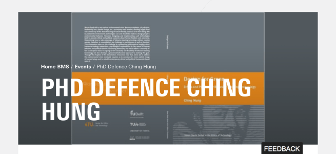 November 13 2019, Ching Hung will defend his PhD dissertation “Design for Green: ethics and politics for behavior-steering technology”. In his dissertation, he examines the limits of liberalism to deal with environmental problems. By means of an original and unorthodox combination of insights from the work of Skinner and of Popper, combined with a detailed analysis of the structure of human-technology relations, Ching Hung arrives at interesting and innovative proposals to design our material world in a new, green way. More information: https://www.utwente.nl/en/bms/events/2019/11/218167/phd-defence-ching-hung.