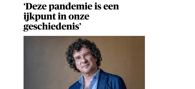Interview in Dagblad Trouw, over het coronavirus en de implicaties ervan voor de relaties tussen mens, natuur en technologie: https://www.trouw.nl/wetenschap/deze-pandemie-is-een-ijkpunt-in-onze-geschiedenis~b109419c/. (Klik hier als de link niet werkt: interview.pdf.)
