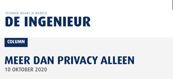Column in De Ingenieur, over de ethiek van de CoronaMelder app en de spanning tussen individuele en collectieve waarden: https://www.deingenieur.nl/artikel/meer-dan-privacy-alleen.