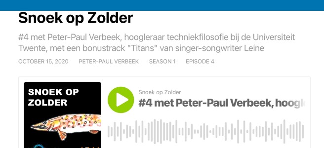Interview in ‘Snoek op Zolder’: de nieuwe wetenschapspodcast van de Nederlandse AI Coalitie en het Nationaal Innovatie Centrum voor AI. Over kunstmatige intelligentie, ethiek, Unesco en het belang van een mondiaal perspectief. Luister via https://www.buzzsprout.com/1351051/5829931-4-met-peter-paul-verbeek-hoogleraar-techniekfilosofie-bij-de-universiteit-twente-met-een-bonustrack-titans-van-singer-songwriter-leine