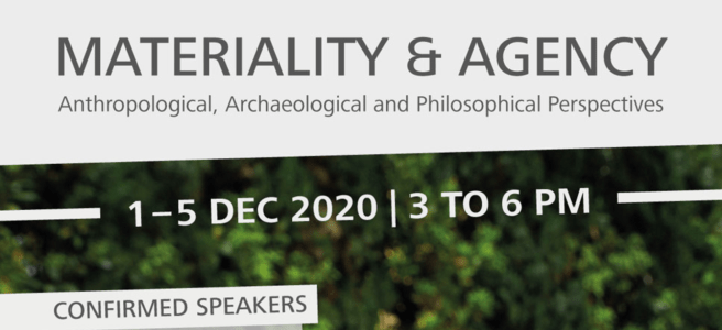 December 1–5, 2020, 3 to 6 pm: conference ‘Materiality and Agency: Anthropological, Archaeological, and Philosophical Perspectives’, University of Cologne (Organizers: Thiemo Breyer & Niklas Grouls)